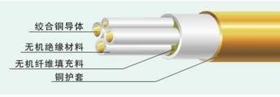 1. 導 體:多股銅線絞合;2. 絕緣層:耐高溫不燃燒的無機絕緣材料;3. 銅護套:縱包焊接并軋紋;4. 外護層:低煙無鹵材料