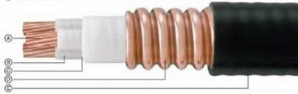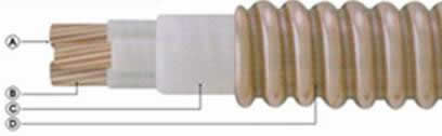 A. 導體:絞合銅導體;B. 絕緣:合成云母帶;C. 填充:無機材料;D. 銅套:縱包焊接并軋紋